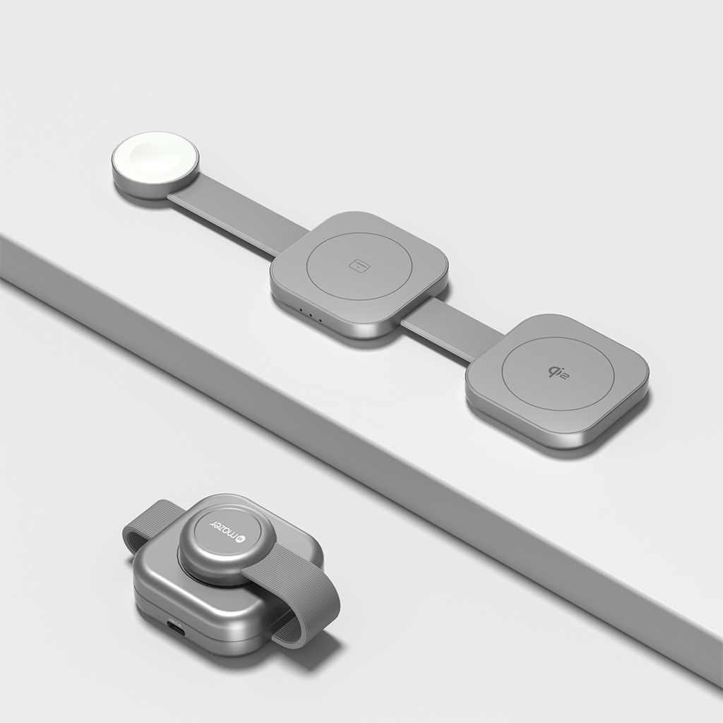 Sạc không dây Mag Trifold 3-in-1 sở hữu thiết kế siêu nhỏ gọn, chỉ 255 × 59.5 × 11mm khi mở ra, và có thể gập lại với kích thước chỉ bằng một quả bóng chày (59.5 × 59.5 × 34.5mm), cực kỳ tiện lợi khi mang theo bên mình. Với trọng lượng siêu nhẹ chỉ 133g, sản phẩm dễ dàng bỏ túi hoặc balo, phù hợp cho những người thường xuyên di chuyển. Thiết kế thông minh cho phép Mag Trifold linh hoạt biến đổi thành nhiều dạng khác nhau từ giá đỡ sạc đứng cho iPhone đến đế sạc phẳng dành cho AirPods và Apple Watch, mang lại trải nghiệm linh hoạt hơn bao giờ hết và tiết kiệm không gian tối đa.