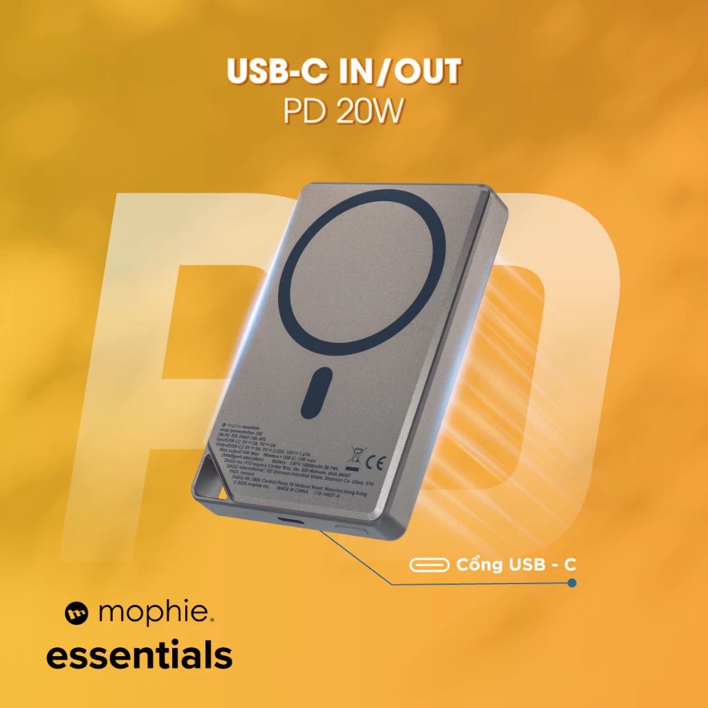 01 Sạc dự phòng mophie Essentials Snap+ 10,000mAh Metallic